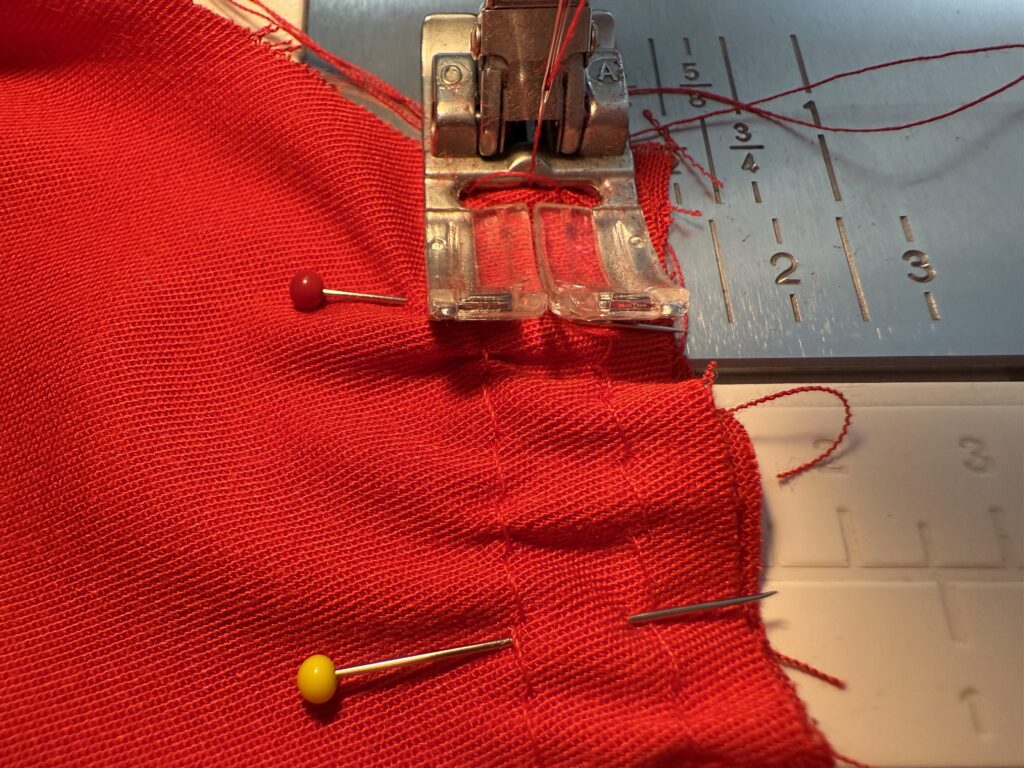 Inzwischen habe ich nämlich ein Probekleid (aus einer roten Viskose) genäht und dabei einige Erkenntnisse gesammelt: